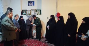 فرمانده ناحیه مقاومت بسبج سپاه کرمانشاه درپایان ضمن ابراز خرسندی از بازید صمیمانه از خانواده شهید سیابانی، مادر ایشان را مورد تکریم قرار داد و از حضور معنوی و نقش بی بدیل ایشان در تربیت فرزند عزیزشان تجلیل نمود.