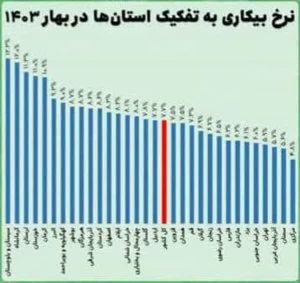 براساس اعلام مرکز آمار ایران، پنج استان کشور همچنان نرخ بیکاری دورقمی دارند که کرمانشاه هم یکی از همین استانها است.استان سیستان و بلوچستان با نرخ بیکاری ۱۲.۳ درصدی همچنان بیشترین نرخ بیکاران را در بین استانهای دیگر داراست. استانهای کرمانشاه و لرستان نیز با نرخ بیکاری بهترتیب ۱۲ درصد و ۱۱.۳ درصدی، در ردههای دوم و سوم استانها با بیشترین بیکاری قرار گرفتهاند. ۲ استان خوزستان با ۱۱ درصد و کرمان با ۱۰.۹ درصد نیز دیگر استانهایی هستند که نرخ بیکاری دورقمی دارند.بهار سال گذشته نرخ بیکاری استان کرمانشاه ۱۰.۲ درصد اعلام شده بود و نرخ بیکاری بهار امسال استان با ۱۲ درصد در مقایسه با سال گذشته ۱.۸ درصد افزایش داشته است.در این مدت متوسط نرخ بیکاری کشور ۷.۷ درصد بوده و مقایسه نرخ بیکاری استان و متوسط کشور نشان میدهد نرخ بیکاری کرمانشاه ۴.۳ درصد بالاتر از میانگین کشور است.